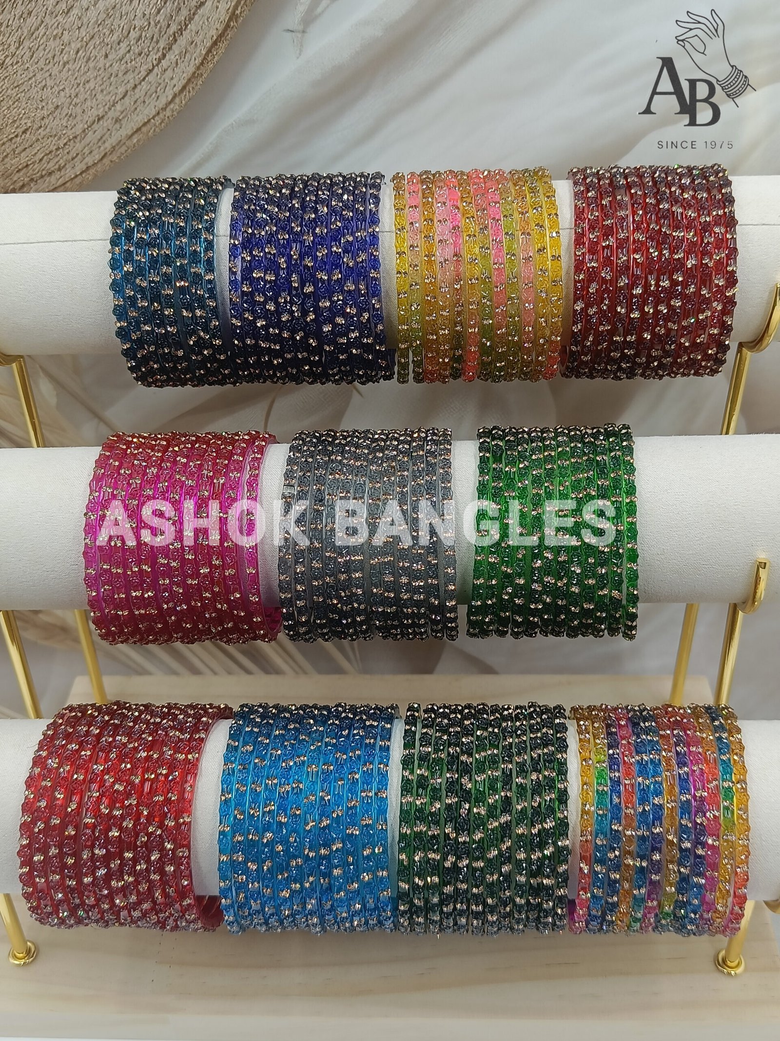 Ashok Bangles – Multi-Color Glass Bangles with Rhinestone Embellishments
