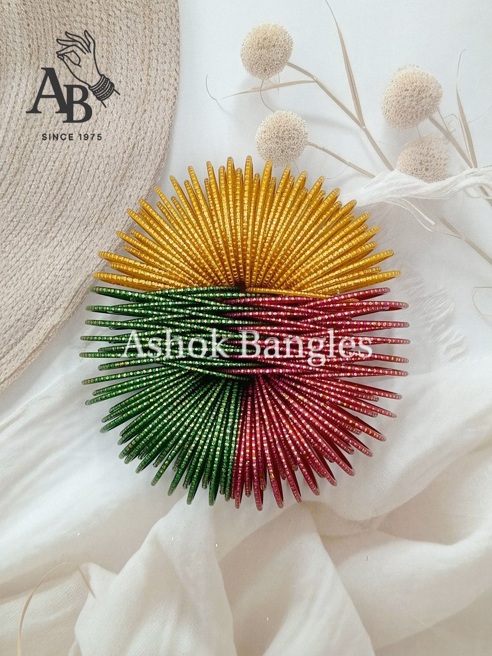 Add a vibrant and patriotic traditional touch to your look with the Ashok Bangles Tricolor Plain Glass Bangle Bundle. Crafted from premium quality glass, these glossy plain bangles feature a beautiful combination of green, white, and orange shades, making them perfect for festive occasions, cultural celebrations, parties, and everyday ethnic wear.